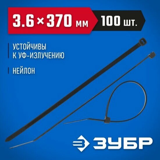 Нейлоновые хомуты ЗУБР 3.6 x 370 мм 100 шт черные