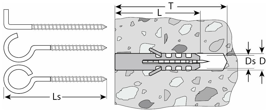 Применение - для крепления в полнотелые основания (бетон, кирпич, природный камень) светильников, держателей для полотенец, стенных шкафов, карнизов для штор, сантехнических систем и прочих конструкций