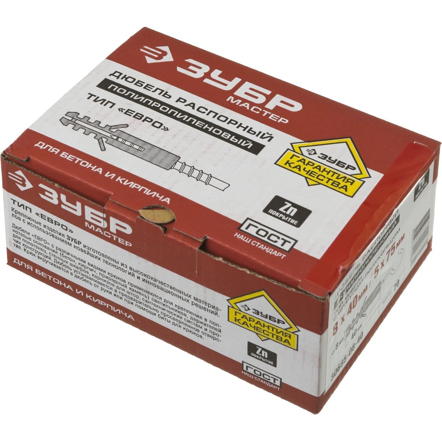 Полипропиленовый распорный дюбель с шурупом ЗУБР тип ЕВРО 8x40/5x75мм