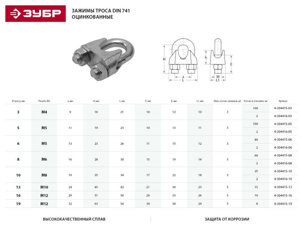 Сервис сравнения цен СкидкаГИД предлагает сравнить цены на товар «Оцинкованный зажим троса ЗУБР Профессионал din 741 16мм 10 шт»