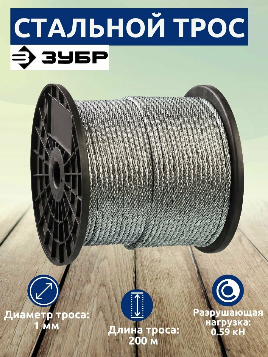 Стальной трос ЗУБР Профессионал din 3055 d=1 мм l=200 м
