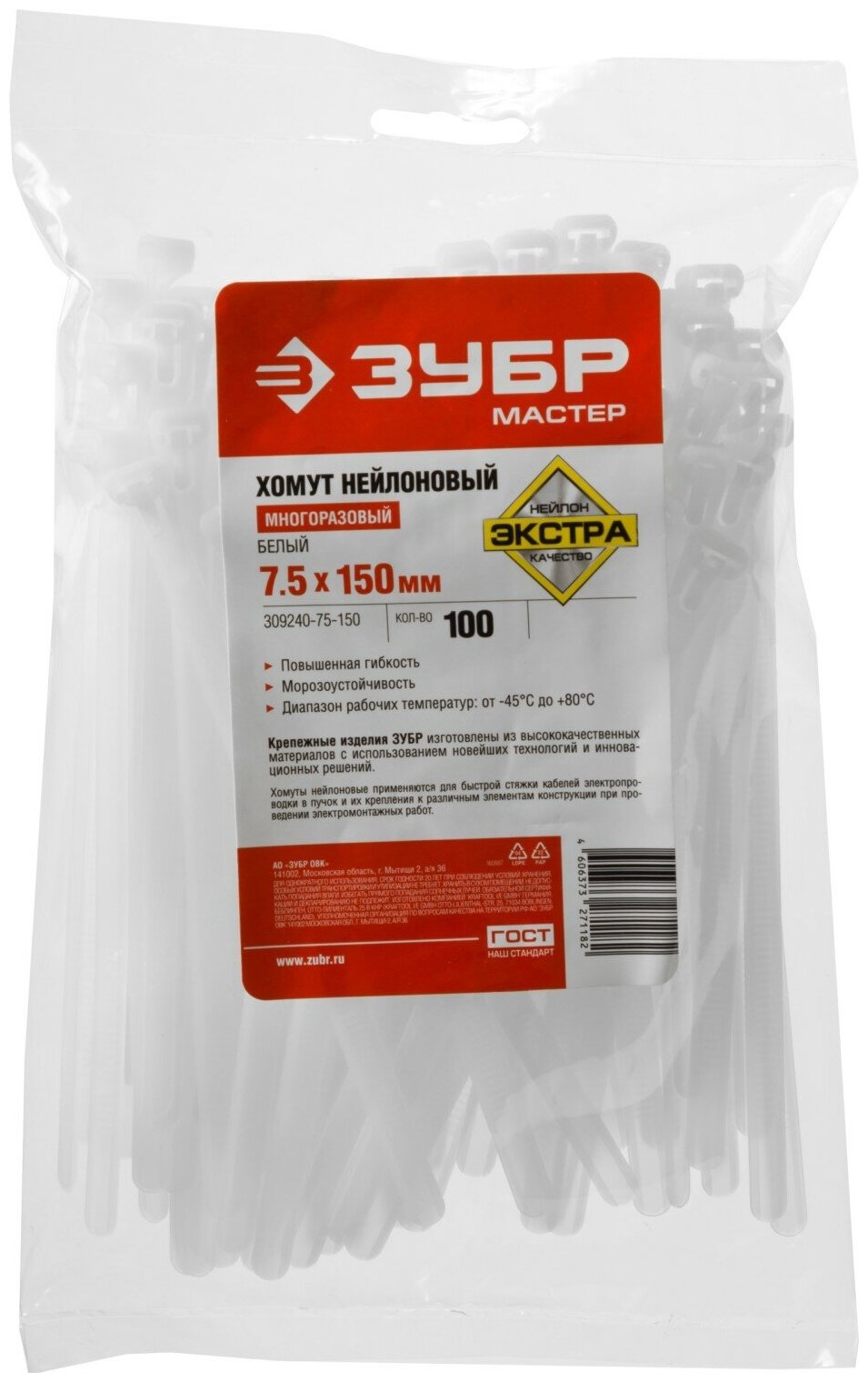 Сервис сравнения цен СкидкаГИД предлагает сравнить цены на товар «Нейлоновые хомуты ЗУБР 7.5 x 150 мм 100 шт многоразовые»