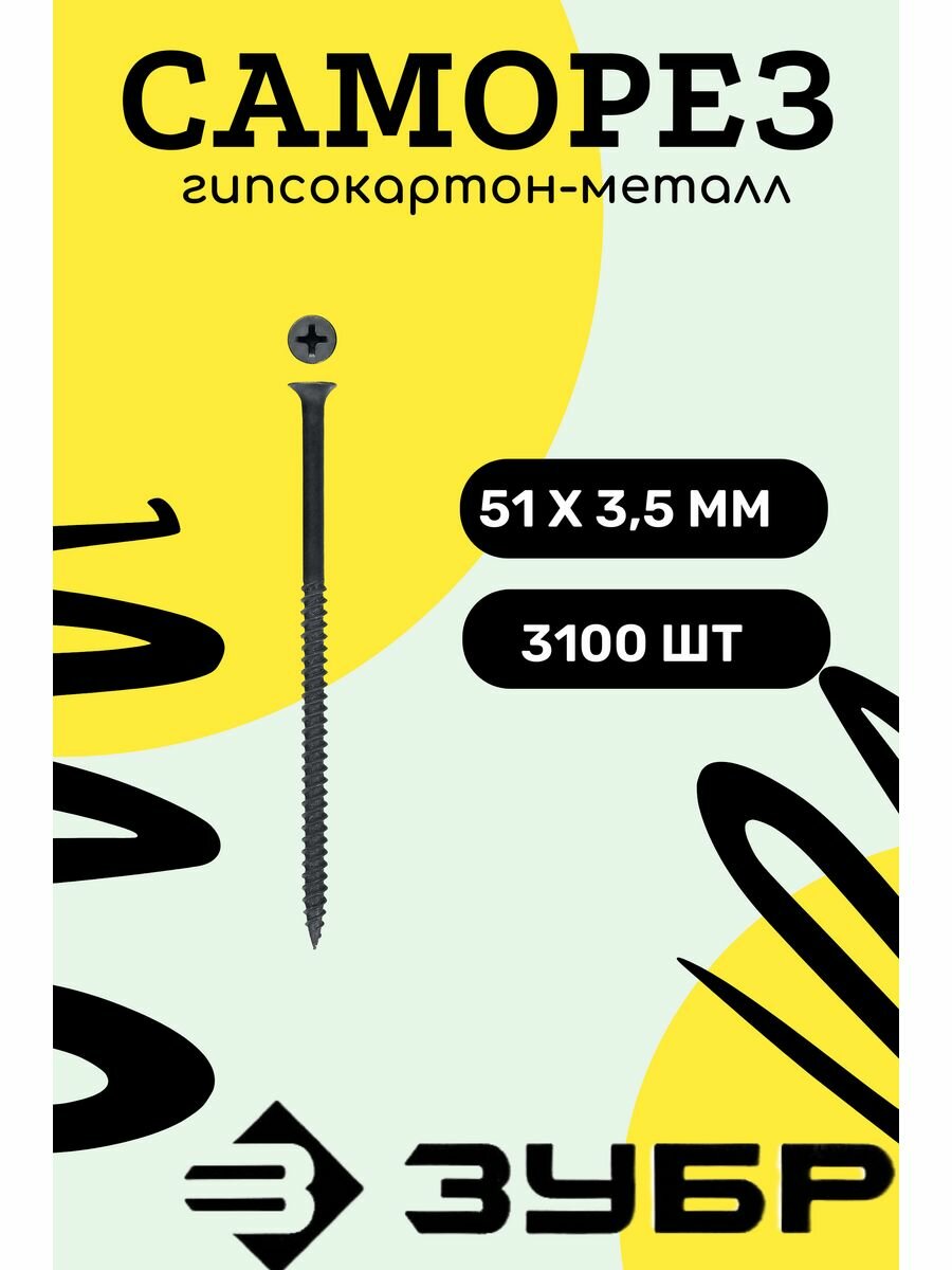 Универсальные оксидированные саморезы по дереву/металлу ЗУБР СГМ гипсокартон-металл 51x3.5мм 3 100 шт