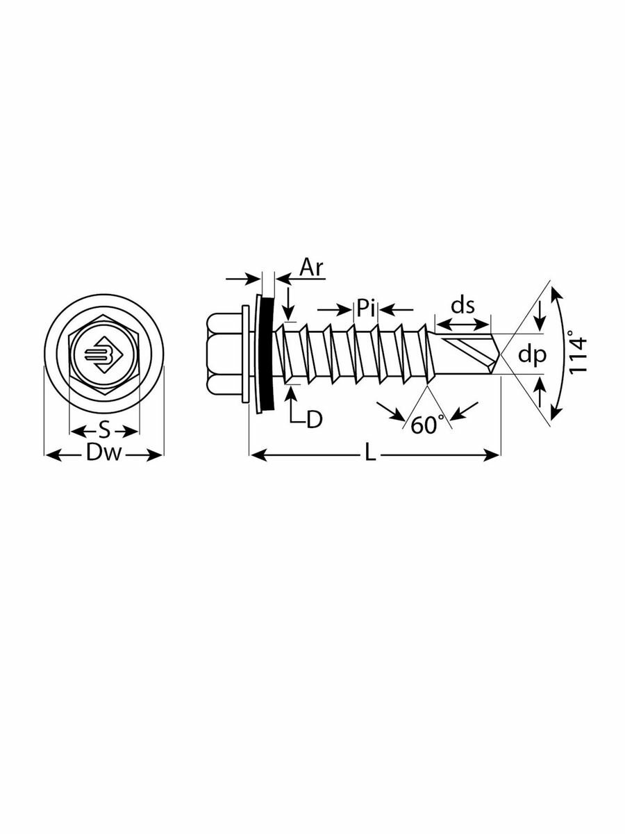 Кровельные саморезы изготовлены из стального прутка с высоким содержанием углерода. Шайба с прокладкой EPDM плотно прижимается к кровельному материалу, герметизируя просверленное отверстие. Шестигранная головка выдерживает большой крутящий момент и значительно облегчает вкручивание самореза.