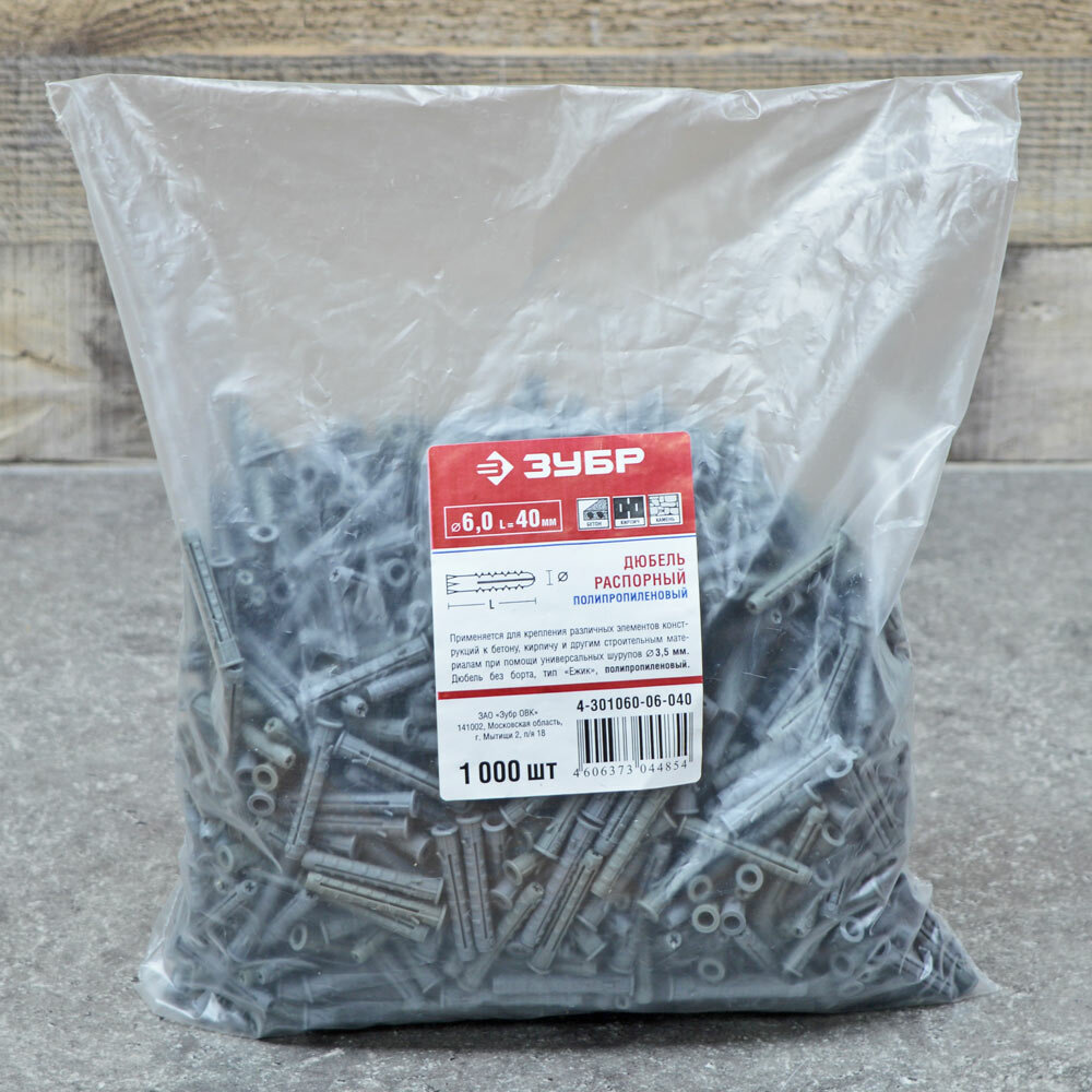 Широкий ассортимент крепежа ЗУБР позволяет подобрать нужный тип дюбеля для крепления разнообразных конструкций к любым видам оснований: полнотелым, пустотелым, тонкостенным и т.п.Дюбели распорные "Ежик" применяются в полнотелых строительных материалах (бетон, кирпич, природный камень). Крепление элементов конструкций осуществляется при помощи шурупов или саморезов.