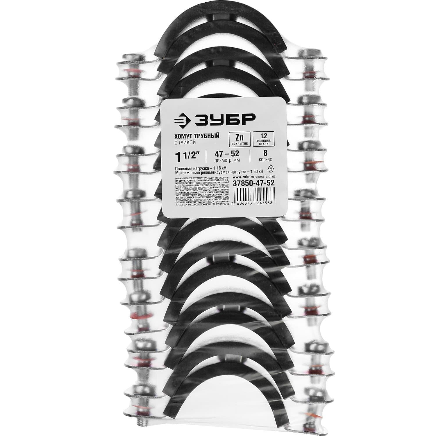 Оцинкованный трубный хомут ЗУБР Мастер 1 1/2 8шт