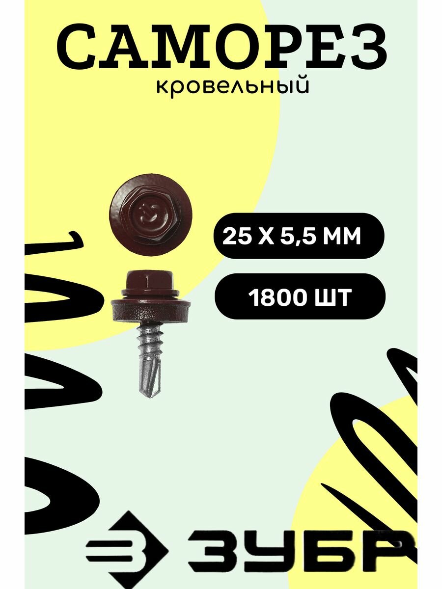 Саморезы ЗУБР СКМ кровель. ral 3005 темно-красный 25x5.5мм 1 800 шт