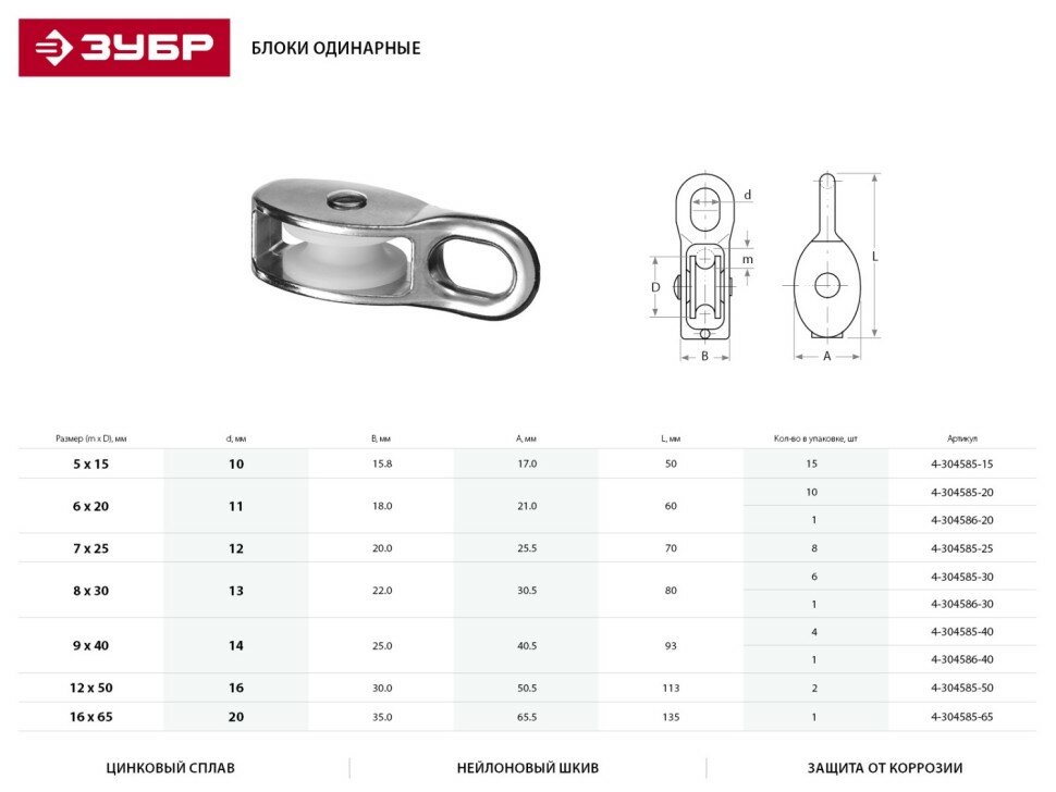 Блоки оснащены нейлоновым диском (шкивом), благодаря которому меняется направление движения троса или каната.