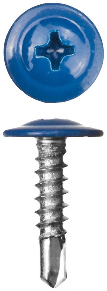 Саморез-сверло с прессшайбой по листовому металлу до 2 мм ЗУБР ПШМ-С со сверлом д/лист. мет. 25x4.2мм 400 шт ral-5005 синий насыщ.
