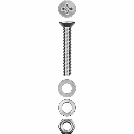 | Тип | Винт (DIN965) с потайной головкой в комплекте с гайкой (DIN934), шайбой (DIN125), шайбой пруж. (DIN127) |