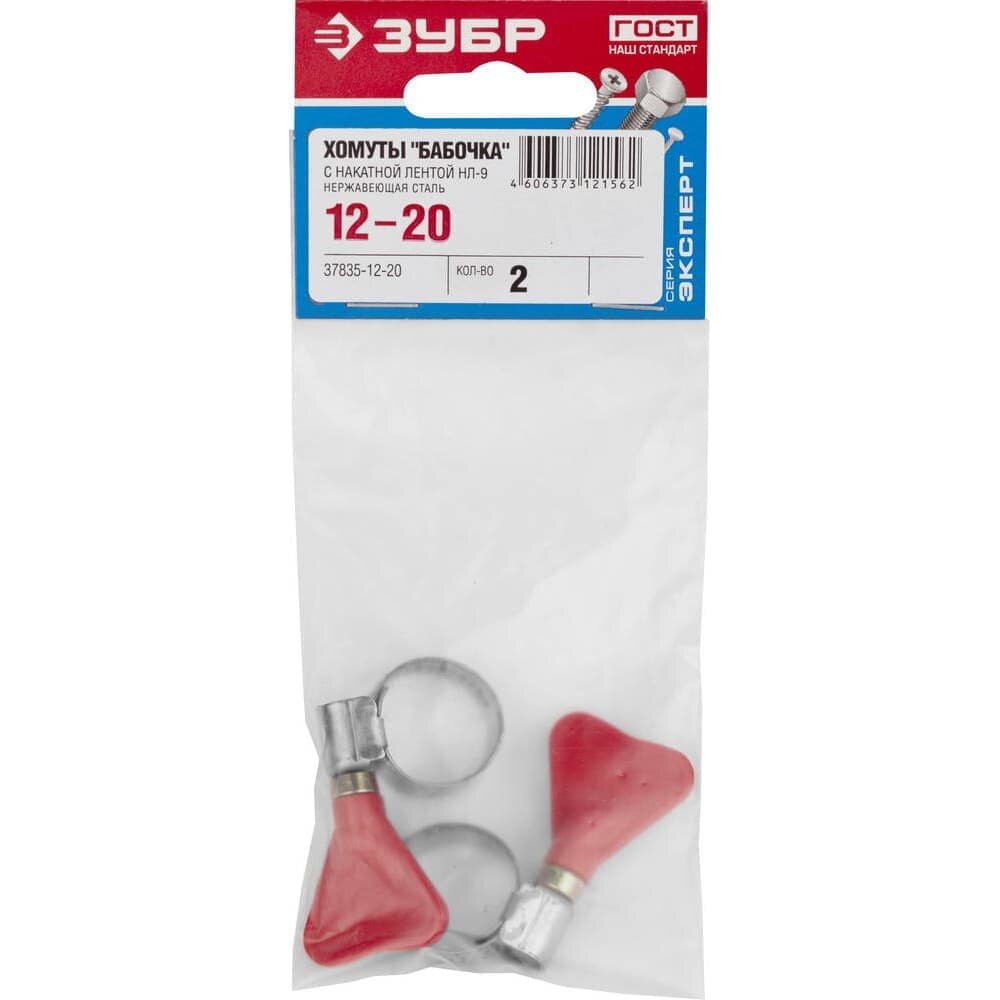 Хомуты "Бабочка", нерж. сталь, накатная лента 9 мм, 12-20 мм, 2 шт, ЗУБР Профессионал