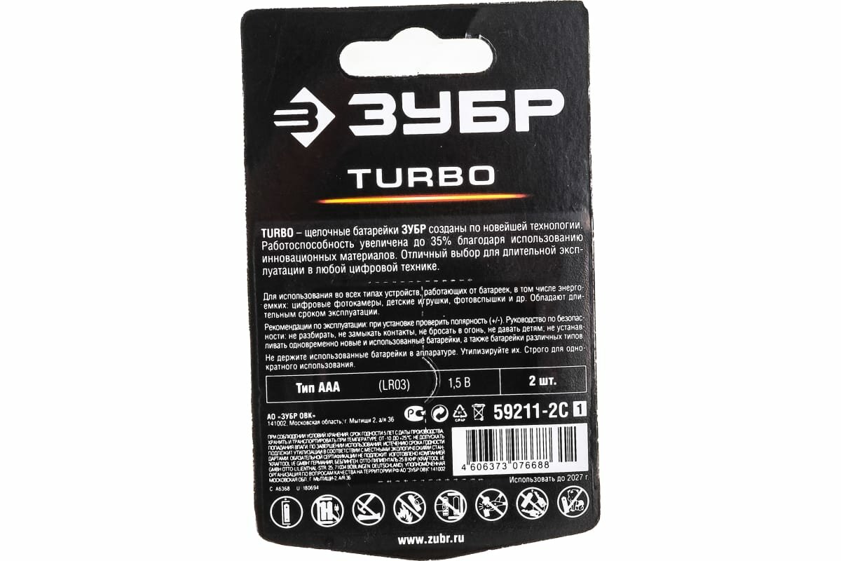 Щелочная батарейка ЗУБР turbo 59211-4c