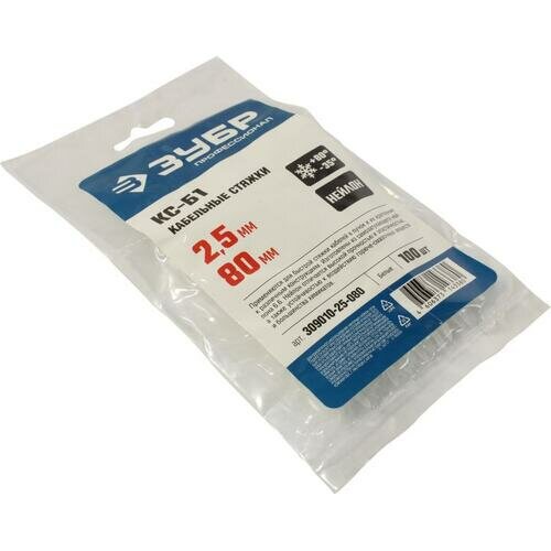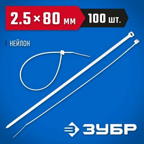 Нейлоновые хомуты ЗУБР 2.5 x 80 мм 100 шт белые