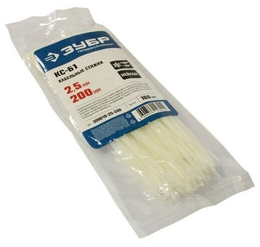 Нейлоновые хомуты ЗУБР 2.5 x 200 мм 100 шт белые