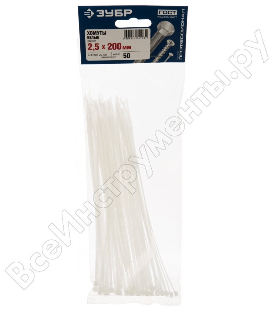 Нейлоновые хомуты ЗУБР 4-309017-25-200