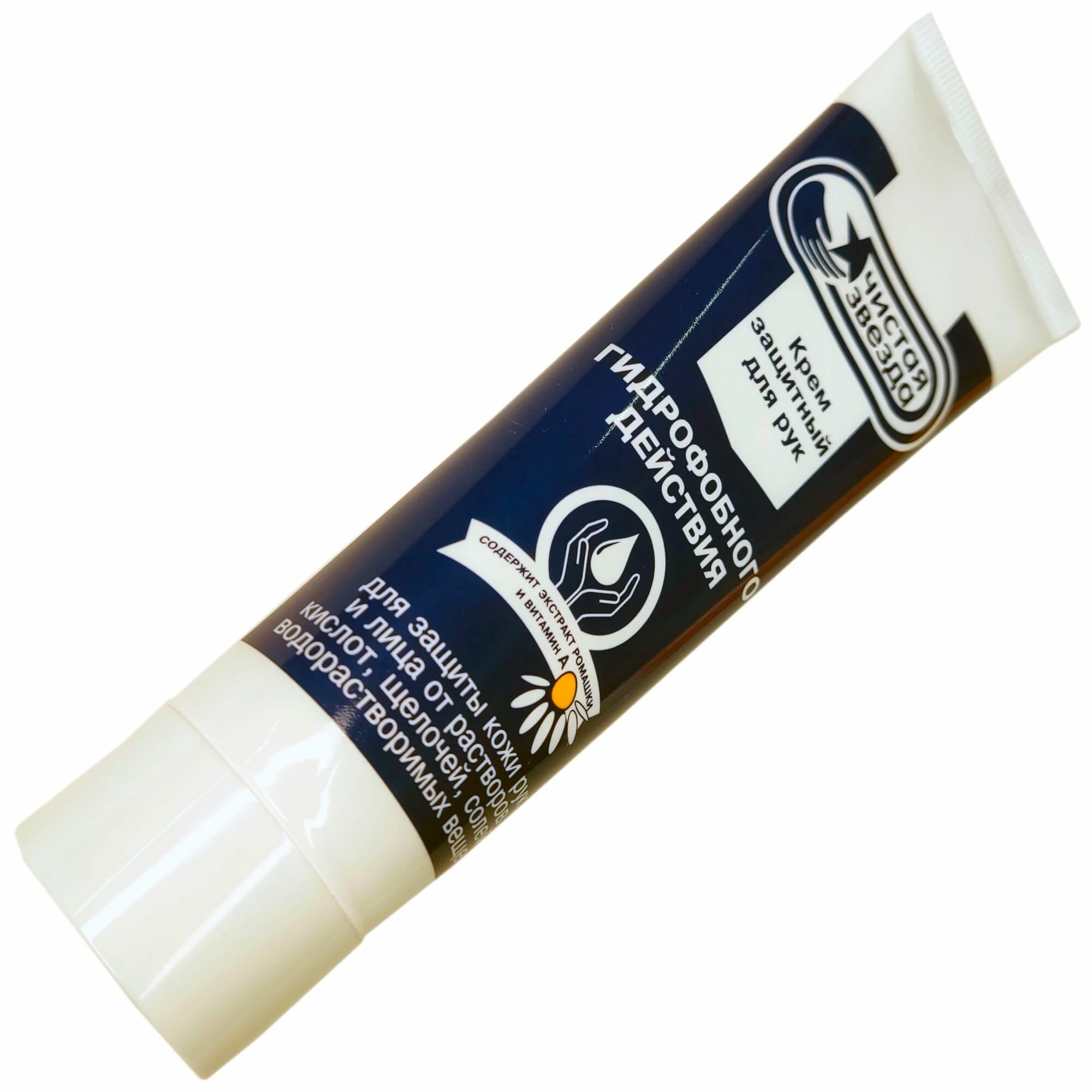 Основной задачей гидрофобного крема является создание защитного слоя, который будет снижать или препятствовать контакту вредных веществ с кожей человека. Для защиты кожи рук и лица от растворов кислот, щелочей, солей и водорастворимых веществ. Крем эффективно защищает кожу от растворов кислот, щелочей, солей, извести, цемента, удобрений, дезинфицирующих растворов и других водорастворимых рабочих материалов. Не оставляет отпечатков пальцев. Не препятствует дыханию кожи. Крем содержит глицерин (увлажняет кожу), ланолин (питает кожу) и специальные компоненты, создающие прочную защитную пленку. Следовательно, при нанесении крема создается защитная пленка, а под пленкой кожа рук питается и увлажняется. Не содержит силикона. Перед работой необходимо нанести крем на руки и тщательно растереть по всей поверхности рук. После окончания работы крем вместе с загрязнениями обязательно нужно смыть моющим средством. В некоторых случаях достаточно использовать туалетное мыло, а если руки сильно загрязнены — очищающей пастой.Упаковка: туба 100 мл. Срок годности: 3 года с даты производства. Стандарт: ГОСТ 31460–2012, ТР ТС 019/2011.
