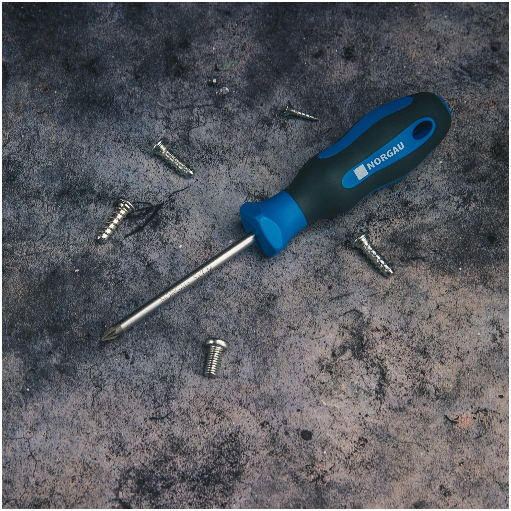 Крестовая отвертка Norgau Industrial - ручной слесарный и столярный монтажный инструмент, предназначенный для работы с резьбовыми соединениями: винтами, саморезами, шурупами. Изделие является одним из самых востребованных в разных сферах, начиная от ремонта бытовой техники до приборостроения. Рабочая часть изготовлена из высококачественной закаленной и хромированной стали SVCM, имеющей высокую износостойкость и пластичность. Наконечник отвертки длиной 210 мм оснащен дополнительными насечками, измененным углом скоса жала и шлица для более прочного крепления в винте. Двухкомпонентная рукоятка содержит отверстие для подвешивания, что упрощает ее хранение, увеличивает прилагаемый крутящий момент, а удобная пятигранная форма предотвращает скатывание лежащей отвертки. Размер магнитного жала соответствует размеру головки крепежа, что позволяет работать с особо мелкими деталями. Выполнена согласно международным стандартам качества продукции DIN и ISO. Тип наконечника – Pozidriv..