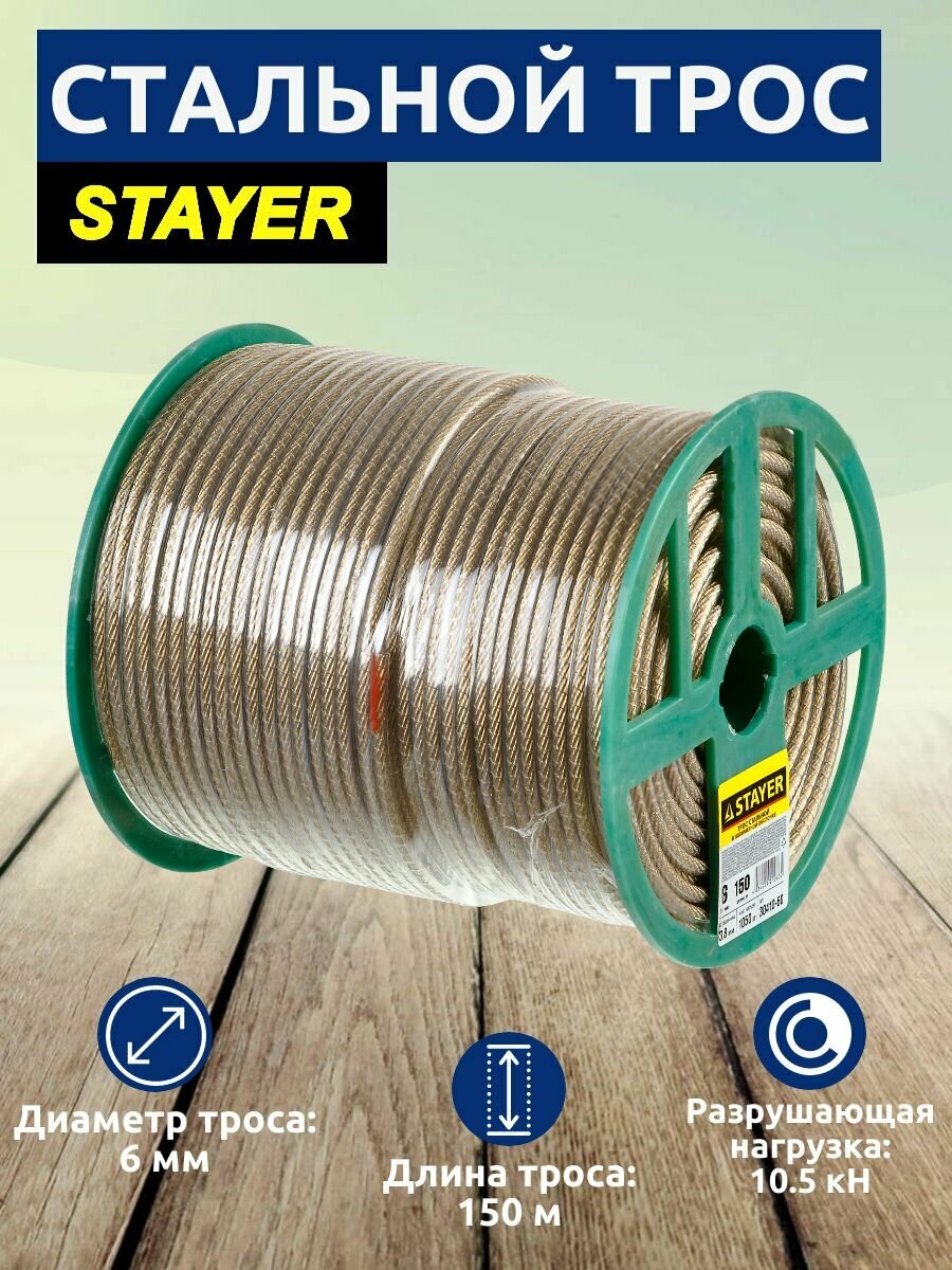 Стальной трос STAYER Masterd=60 мм l=150 м