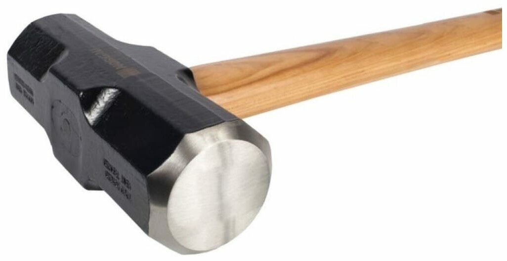 Длина 910 мм. Вес бойка 6355 г. Боек изготовлен из специальной закаленной стали, стандарт DIN 6475. Концы бойка полированы. Рукоятка из древесины гикори, в 3-4 раза устойчивей к разломам в отличие от ясеня. Стандарт DIN 5135. Длинноволокнистая структура древесины гикори гасит ударно-вибрационное воздействие на руку. А также позволяет избежать неконтролируемого отделения рукоятки в случае разлома. Кольцевой клин равномерно распределяет усилие зажима, древесина не разрушается.