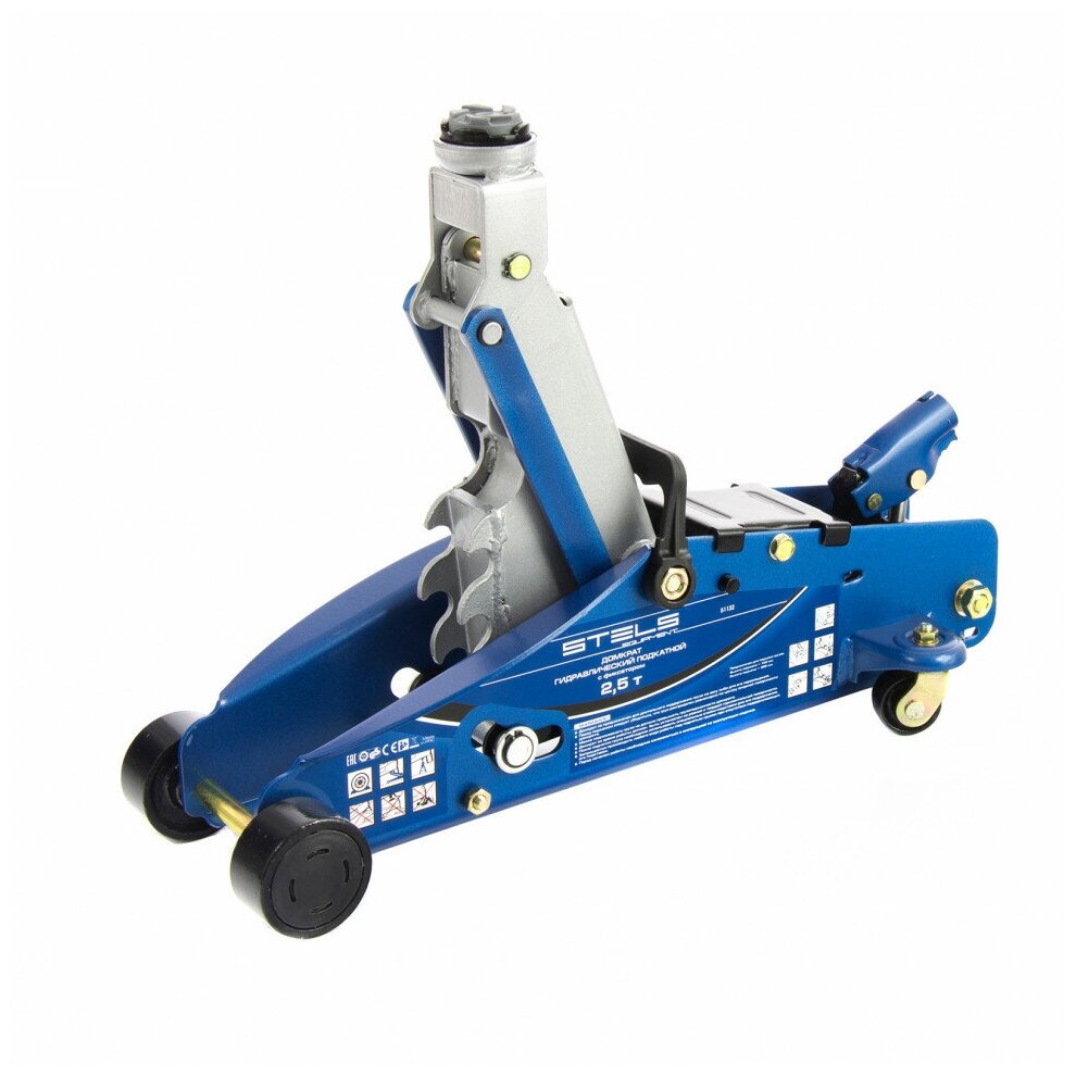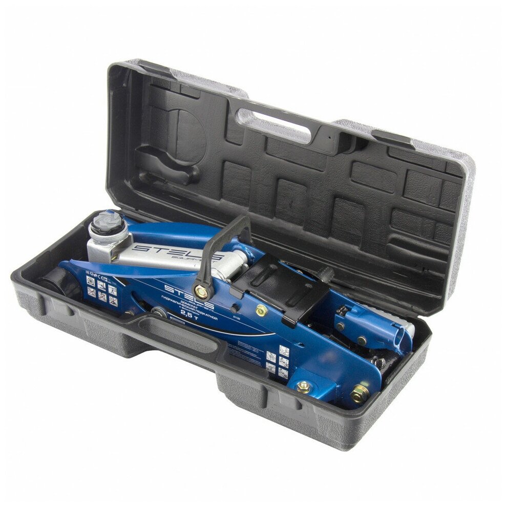 Подкатной гидравлический домкрат торговой марки STELS предназначен для обслуживания легковых автомобилей массой до 2,5 т. Оснащен домкрат системой фиксации подъемного рычага в трех положениях. Высота фиксации 225, 295 и 350 мм. Это позволяет в исключительных случаях использовать домкрат как подставку (стойку) под машину. Упакован домкрат в пластиковый кейс, удобный для хранения и транспортировки.