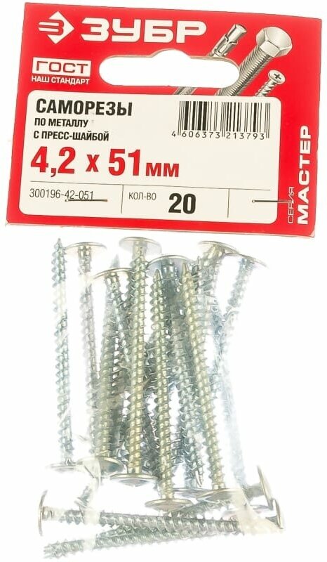 Саморезы с прессшайбой по листовому металлу ЗУБР 300196-42-051