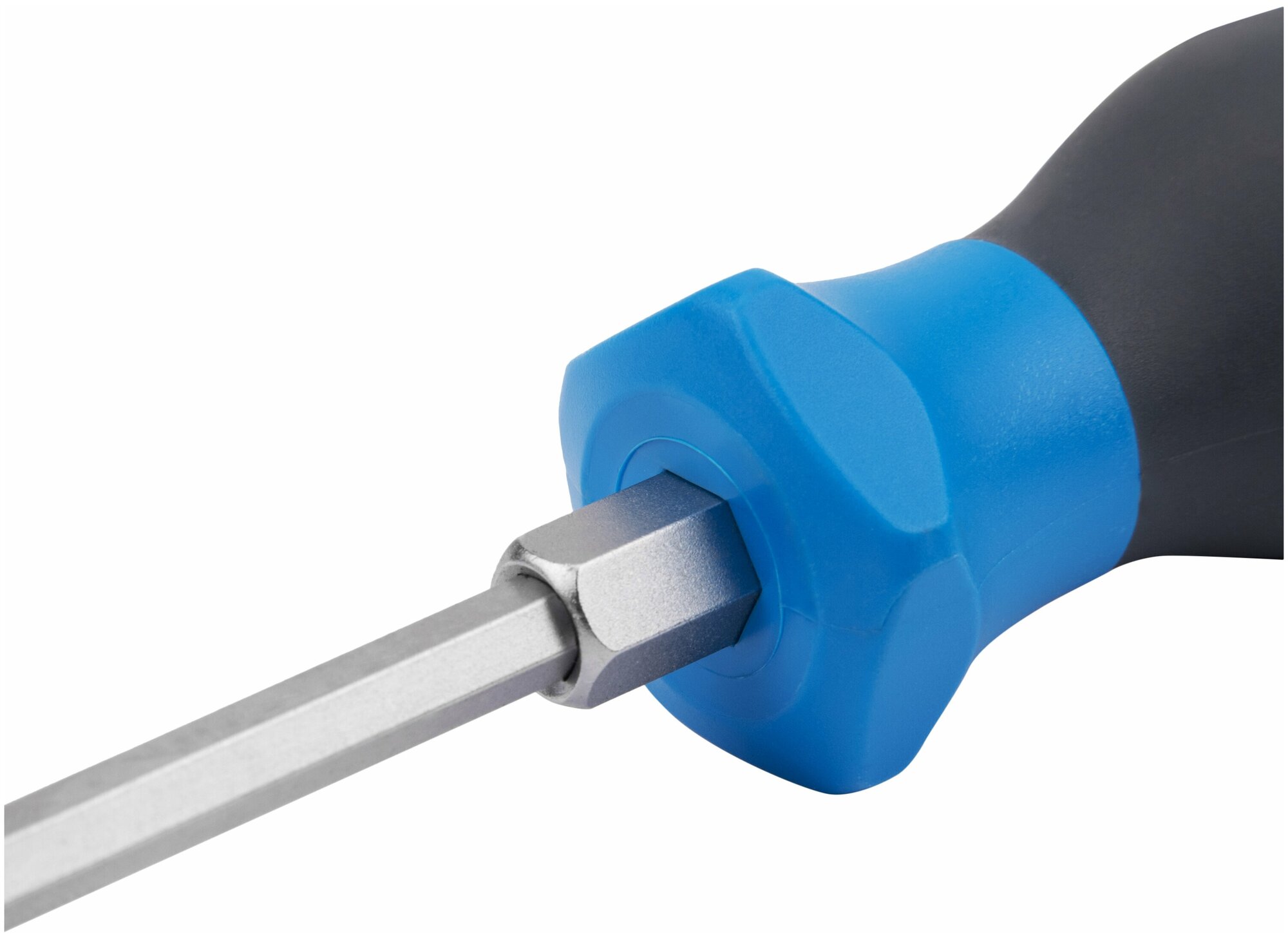Профессиональная серия инструмента Norgau Industrial. Под прямой шлиц SL. Размер шлица- 5,5 мм. Длина стержня- 100 мм. Длина рукоятки- 100 мм. Толщина жала- 1 мм. Стержень с шестигранником под ключ для увеличения крутящего момента. Стержень из современной, высококачественной, закаленной и хромированной стали SVCM+. Жало прошло дополнительную закалку, что придало ему повышенную прочность и износостойкость. Размер магнитного жала четко соответствует размеру головки крепежа, что позволяет достичь оптимальной площади контакта и избежать слизывания граней винта. Двухкомпонентная рукоятка обеспечивает защиту от проскальзывания, стойкость к химикатам и большинству растворителей, а так же препятствует скатыванию лежащей отвертки. Обозначение типа и размера шлица на тыльной стороне рукоятки для облегчения поиска нужного инструмента. Отверстие в рукоятке для подвешивания. Изготовлено по стандарту DIN ISO 2380.