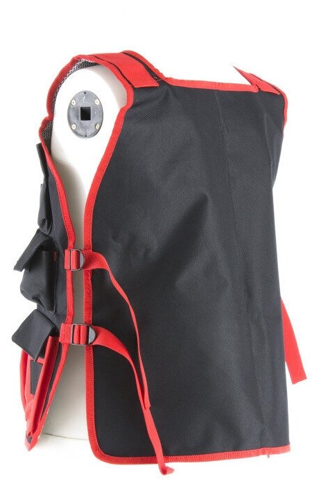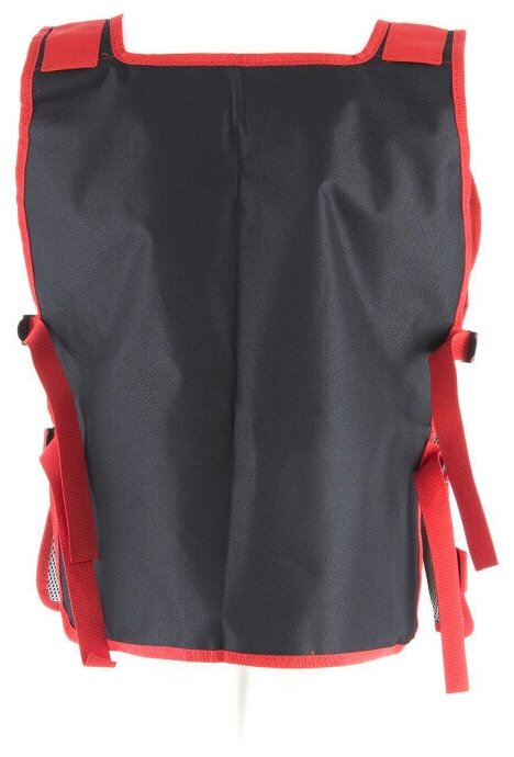 Универсальный размер благодаря двойным боковым застежкам. Большое количество карманов разного размера для хранения инструментов и мелких деталей. Вставка из сетчатой ткани на спинке для предотвращения прилипания к спине. Прозрачный карман для удостоверений. Устойчив к воздействию влаги, химических веществ и низких температур. Изготовлен из прочного синтетического материала.