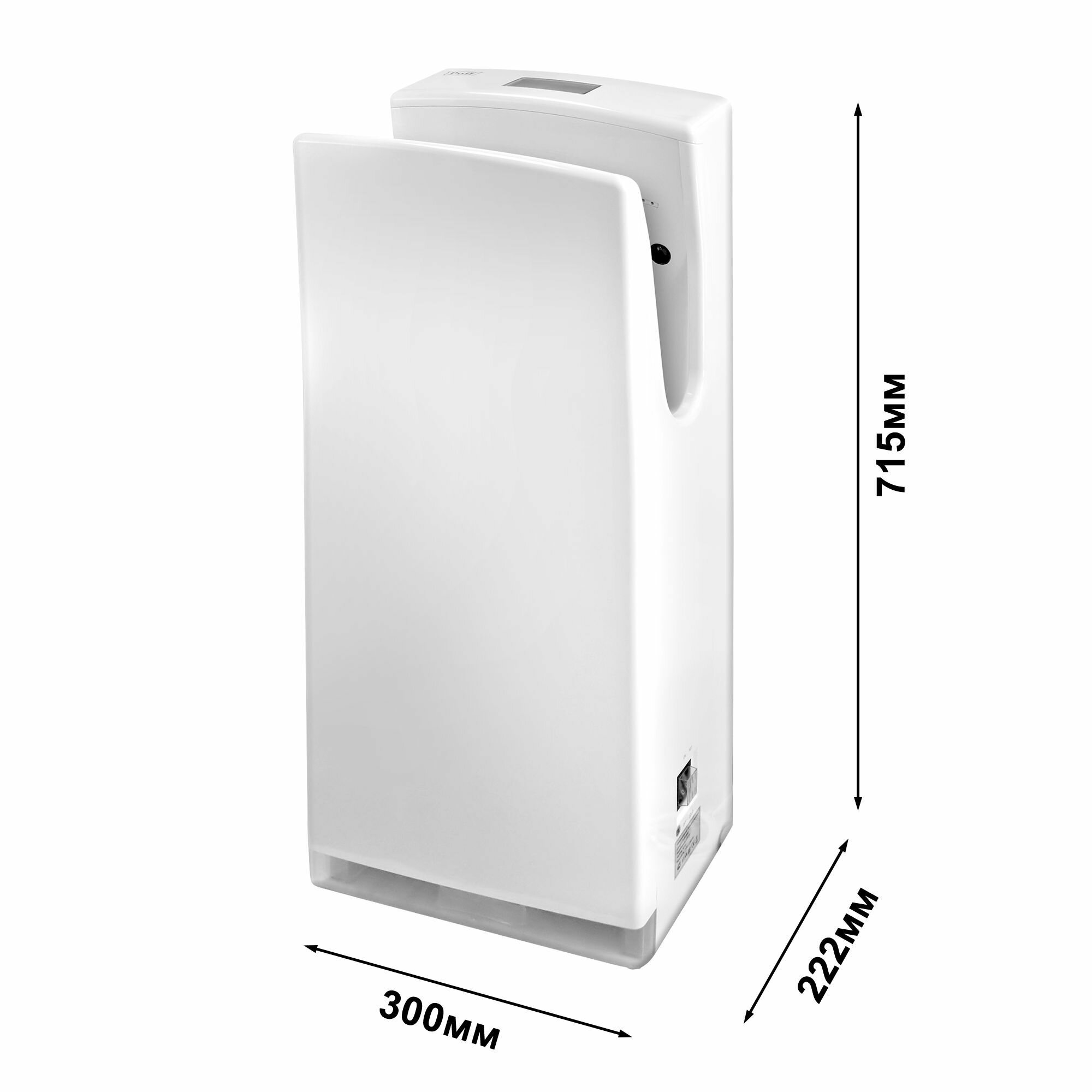 | Прочие особенности и свойства | Новинка! Обладает стильным дизайном и самой высокой скоростью воздушного потока из погружных сушилок для рук - более 100 м/с. Не сушит кожу. Имеется LSD дисплей с указанием температуры. Отлично подходит для мест с повышенной проходимостью. |
