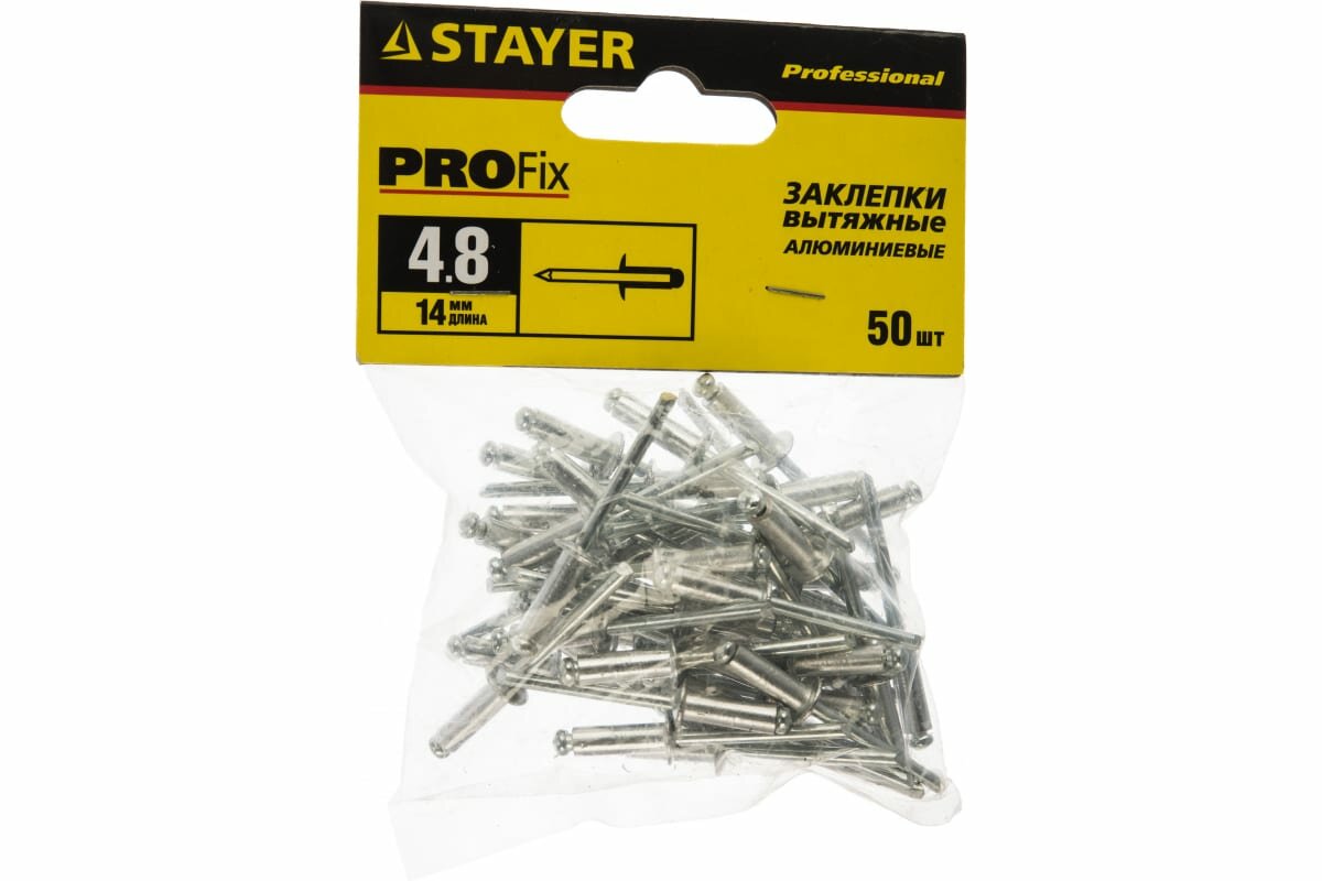 Заклепки STAYER алюминиевые, 4,8x14 мм, 50 шт. – это заклепки, которые используются для скрепления между собой листовых материалов из металла, кожи и пластмассы.