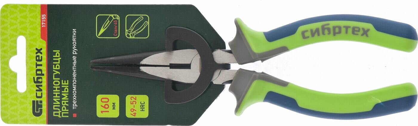 Длинногубцы прямые,160 мм, фосфатирование, трехкомпонентные рукоятки// Сибртех