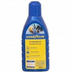 Автошампунь с воском от Goodyear для ручной мойки автомобиля. Применяется для ухода за лакокрасочным покрытием и другими элементами авто.Благодаря особому концентрированному составу с высоким содержанием поверхностно-активных веществ, шампунь легко справляется с самыми стойкими загрязнениями. Средство может применяться на любых видах лакокрасочного покрытия, а также стеклянных, пластиковых и резиновых элементах машины.Автошампунь Goodyear создает обильную пену, которая покрывает всю поверхность автомобиля, предохраняя ЛКП от царапин во время мойки. Легко смывается, не оставляя разводов.Входящий в состав натуральный карнаубский воск, образует на поверхности защитную пленку, которая придает покрытию дополнительный блеск, водоотталкивающие и защитные свойства, заполняет микротрещины ЛКП кузова, предохраняет его от воздействия ультрафиолетового излучения и агрессивных сред, обеспечивает очень быстрое и равномерное высыхание.внимание! Не используйте средства на горячем автомобиле.Перед применением ознакомьтесь с инструкцией на тыльной стороне упаковки.