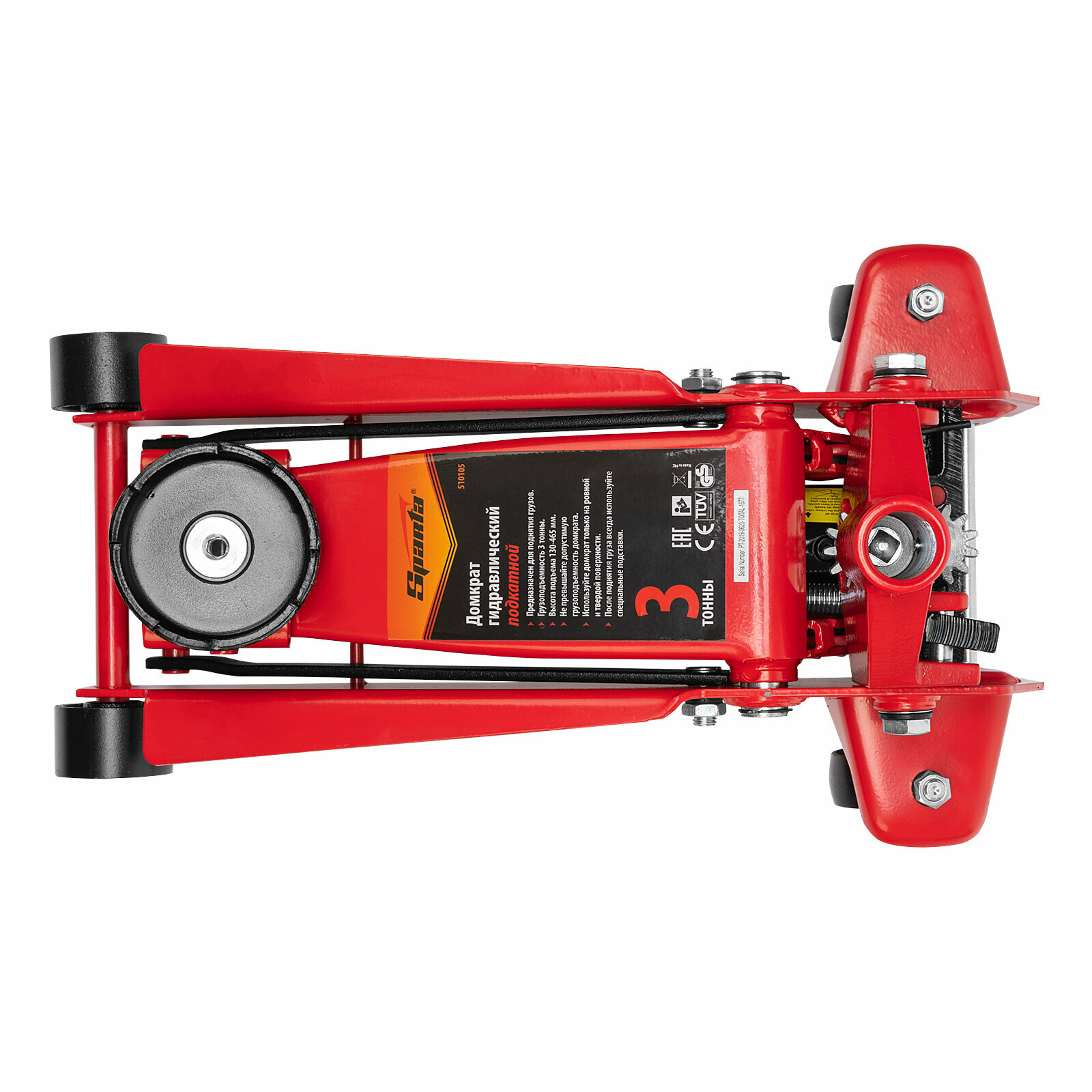 Гидравлический подкатный домкрат SPARTA с клапаном безопасности предназначен для подъема груза массой до 3 тонн. Домкрат является незаменимым инструментом в автосервисе, часто используется при проведении ремонтно-строительных работ. Домкрат данной модели относиться к линейке профессионального оборудования. Минимальная высота подхвата домкрата SPARTA составляет 13 см. Максимальная высота, на которую домкрат может поднять груз, составляет 46.5 см. Этой высоты достаточно для установки жесткой опоры под поднятый груз и проведения ремонтных работ. Клапан безопасности предотвращает подъем груза, масса которого превышает массу заявленную производителем. ВНИМАНИЕ! Домкрат не предназначен для длительного поддерживания груза на весу либо для его перемещения. Перед подъемом убедитесь, что груз распределен равномерно по центру опорной поверхности домкрата. Масса поднимаемого груза не должна превышать массу, указанную производителем. Домкрат во время работы должен быть установлен на горизонтальной ровной и твердой поверхности. После поднятия груза необходимо использовать специальные стойки-подставки для его поддерживания. Запрещается производить любого вида работы под поднятым грузом при отсутствии поддерживающих его подставок. Перед началом работы ознакомьтесь с инструкцией по эксплуатации изделия.