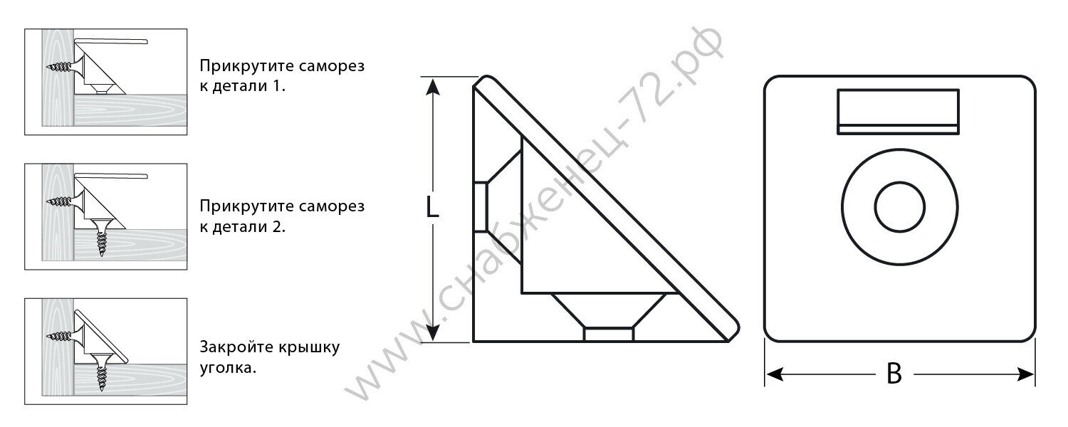 Уголки изготовлены из качественного полипропилена и предназначены для сборки мебели. Обладают высокой прочностью, эстетическим видом и легко заменяют аналогичные изделия из алюминия. Комплектация: уголок - 4 шт. Саморез оцинкованный - 8 шт., 4 х 15 мм