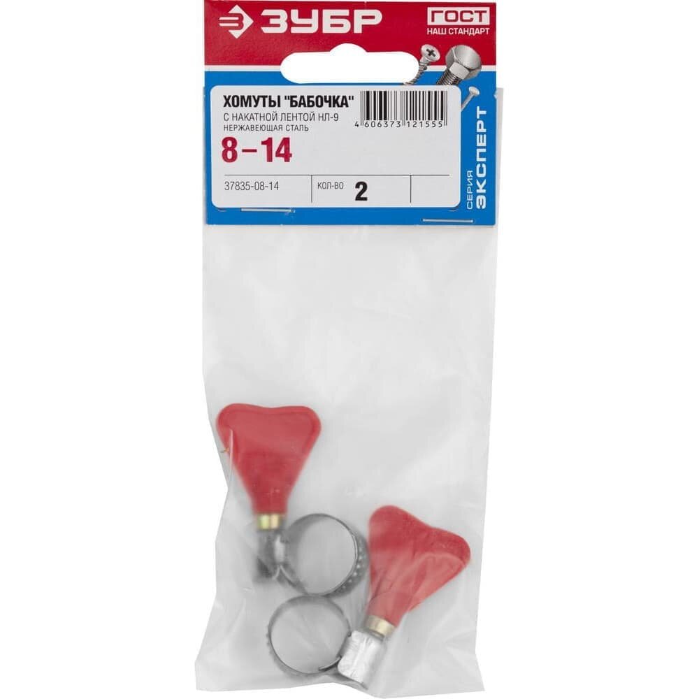 Хомуты "Бабочка", нерж. сталь, накатная лента 9 мм, 8-14 мм, 2 шт, ЗУБР Профессионал