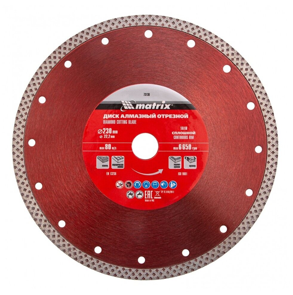 Сделать ровный срез изделия станет гораздо проще, если под рукой окажется отрезной диск Matrix . Благодаря наличию алмазного покрытия это изделие показывает высокую эффективность и качество работы, а также оно надежно защищено от негативного воздействия окружающей среды.