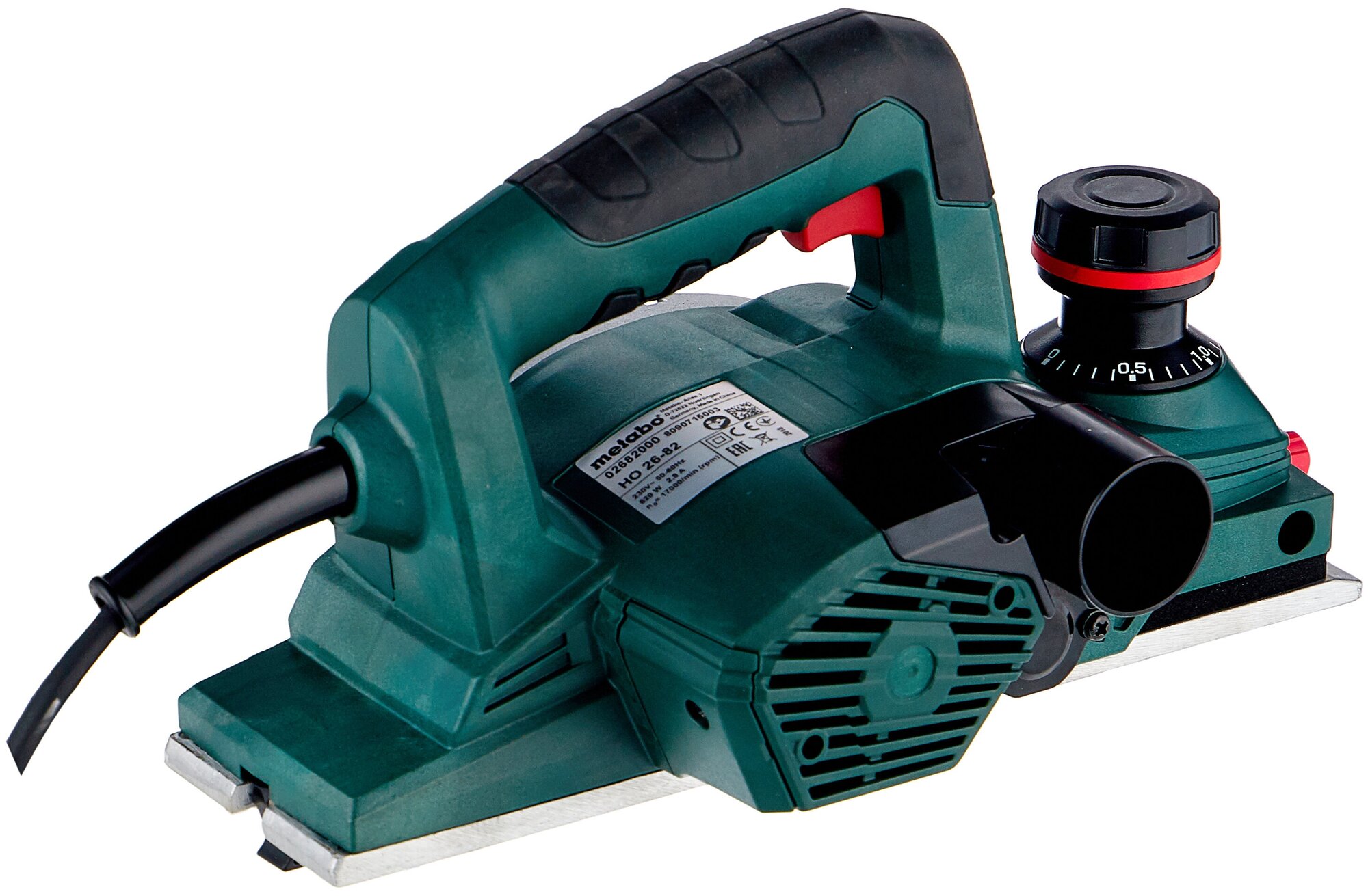 Metabo HO 26-82 - легкий и удобный универсальный рубанок для строгания, выборки четвертей и снятия фасок. Имеет плавную регулировку глубины строгания и глубины фальца. Плоско-фрезерованная подошва рубанка из алюминиевого литья под давлением с V-образной выемкой предназначена для простого снятия фаски. Параллельный упор для точного ведения рубанка. Область возле рукоятки имеет нескользящую накладку Softgrip. Есть возможность подключения универсального пылесоса.