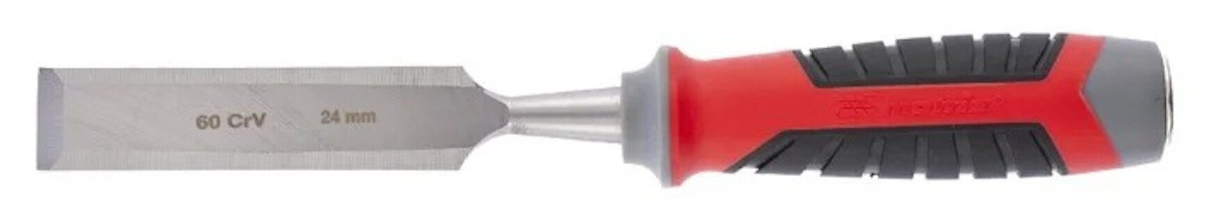 Тип: Стамеска; Ширина: 24 мм; Материал рукоятк: трехкомпонентная; Материал лезвия: сталь; Формат лезвия: плоская; Описание: Инструмент предназначен для выборки и зачистки гнезд, пазов, снятия фасок и других столярных работ., Полотно стамески изготовлено из высококачественной хромованадиевой стали, твердость рабочей кромки 55 HRC., Долото-стамеска имеет трехкомпонентную рукоятку с металлическим затыльником для работы с ударным инструментом.