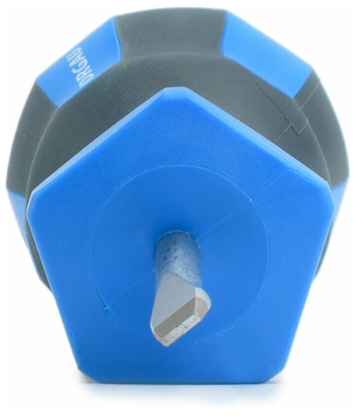 Короткая шлицевая отвертка NORGAU, тип N152 — ручной слесарный инструмент, используемый для работы с резьбовым крепежом: винтами, саморезами, шурупами. Металлическая часть изделия изготовлена из высококачественной стали SVCM. Это обеспечивает износостойкость, долговечность, а также коррозионную устойчивость инструмента. Модель может использоваться как профессионалами, так и при решении бытовых задач. Форма рукояти соответствует анатомическим особенностям кисти руки и препятствует соскальзыванию, повышая безопасность и удобство использования. Упор для большого пальца помогает удерживать крепёж и облегчает работу с мелкими деталями. Отвёртка длиной 103 мм и весом 43,5 грамма имеет наконечник, точно соответствующий размерам крепежа. Размеры жала: 4×38 мм.