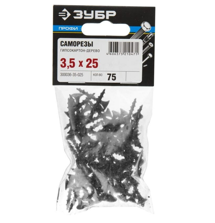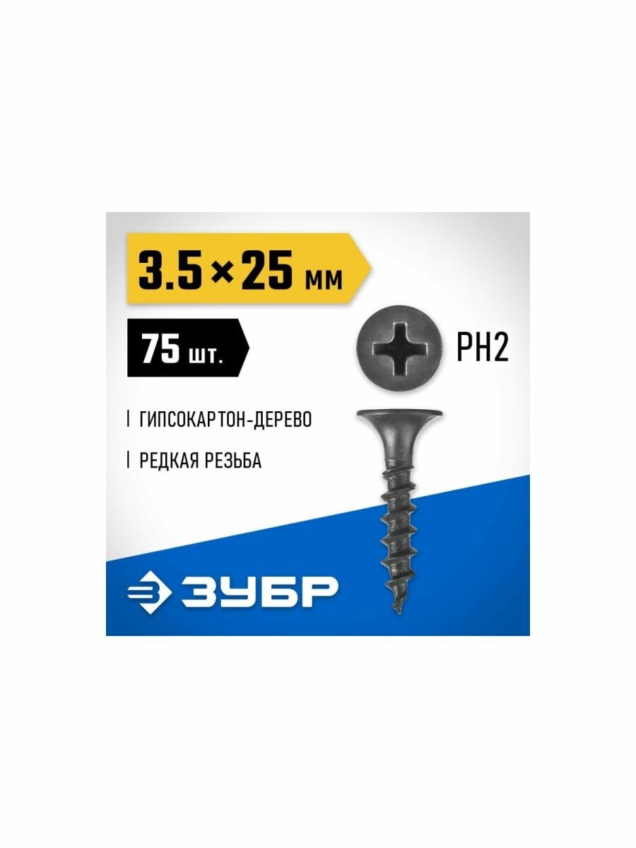 Саморезы ЗУБР СГД гипсокартон-дерево, 25 х 3.5 мм, 75 шт, фосфатированные