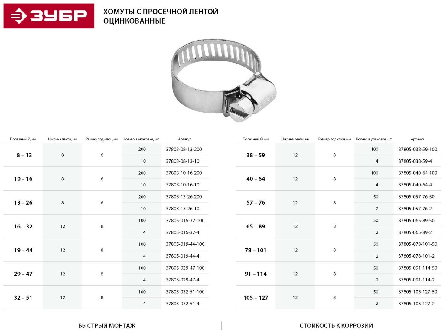 Сервис сравнения цен СкидкаГИД предлагает сравнить цены на товар «Хомут ЗУБР Мастер 37805-091-114-2»