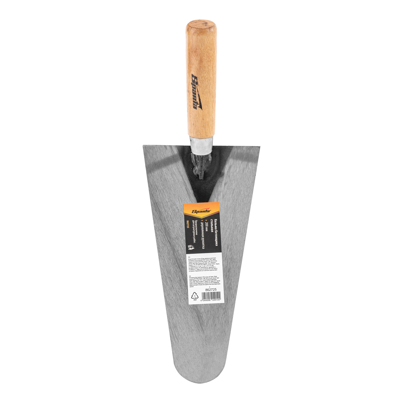 Стальная кельма штукатура 200 мм SPARTA используется для выравнивая раствора, заполнения вертикальных швов и подрезки раствора, выступающего из швов. Инструмент изготовлен из качественной стали, что обеспечивает его долговечность.