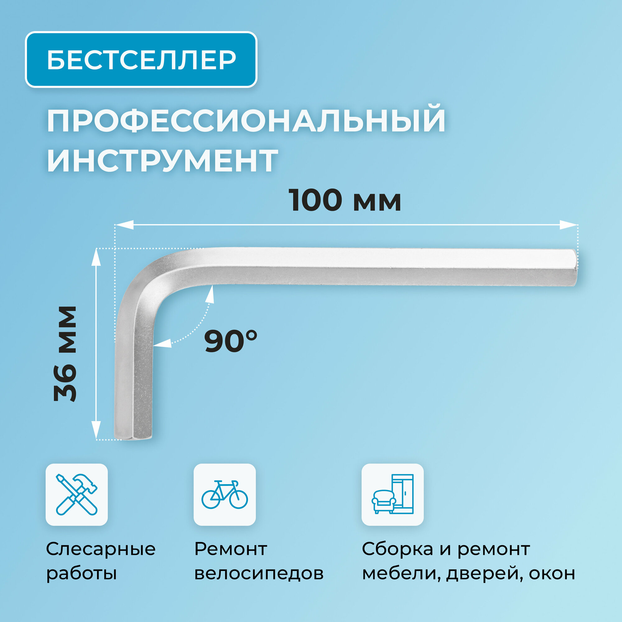 Шестигранный гаечный ключ NORGAU Industrial предназначен для слесарных работ, монтажа/демонтажа резьбовых соединений с внутренним шестигранником. Используется при сборке и ремонте мебели, дверей, пластиковых окон, велосипедов. Имбусовый ключ популярен для оснащения автомастерских и производственных цехов. Подходит для частного применения. Особенности инструмента: Шестигранник выполнен из высококачественной хромованадиевой (CrV) стали: способен выдерживать большие рабочие нагрузки. Хромирование надежно защищает инструмент от появления коррозии. Шестигранный профиль ключа обеспечивает равномерное распределение усилия на грани шлица при затягивании крепежа. Твердость стали: 48-52 HRC. Благодаря этому ключ не деформируется, не проворачивается в шлице в процессе затяжки, не повреждает винты и саморезы. Характеристики: Размер: 8 мм. Длина: 100 мм.