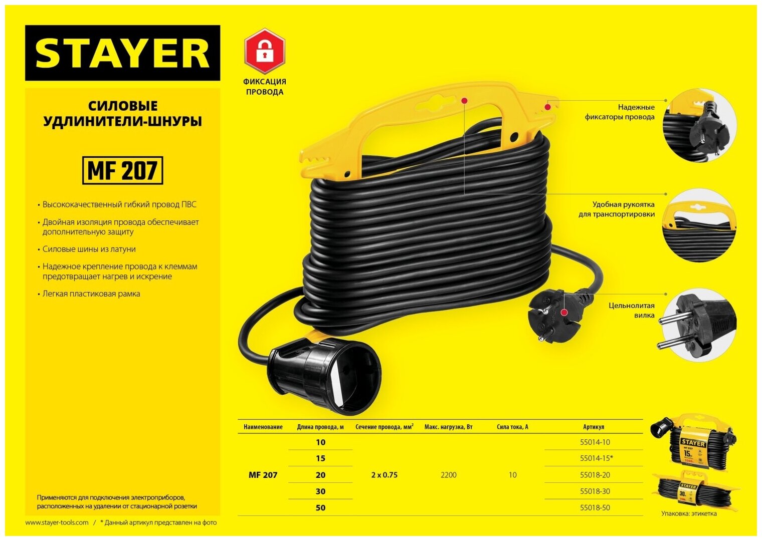 Электрический удлинитель STAYER MASTER 55018-30 служит для подключения одного электроприбора на удаленном расстоянии от стационарной розетки. Прекрасно подходит для использования на дачном участке, в гараже, мастерской, строительном объекте и т. д. Для изготовления данной модели используются прочные и надежные материалы высокого качества.