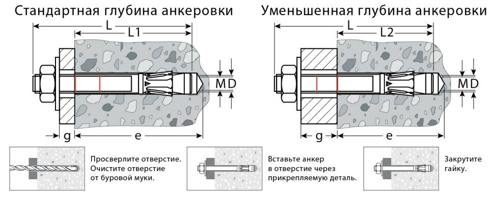 Клиновые анкеры предназначены для крепления различных конструкций к поверхностям из бетона и природного камня.