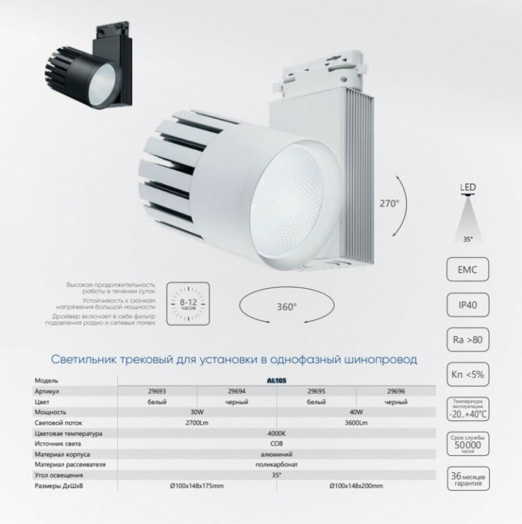 | способ крепления | Шинопровод (трек) |