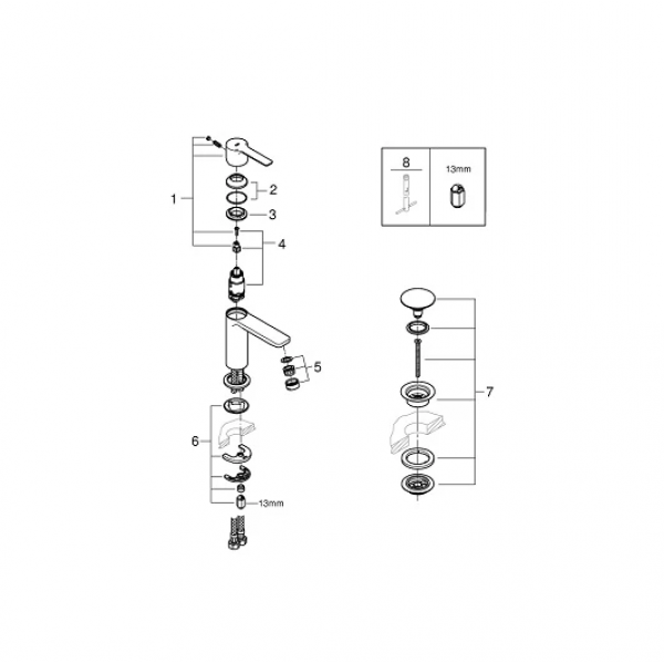 | Технологии | GROHE Long-Life Shine, GROHE QuickFix Plus, GROHE SilkMove, GROHE Speed Clean, GROHE Water Saving |