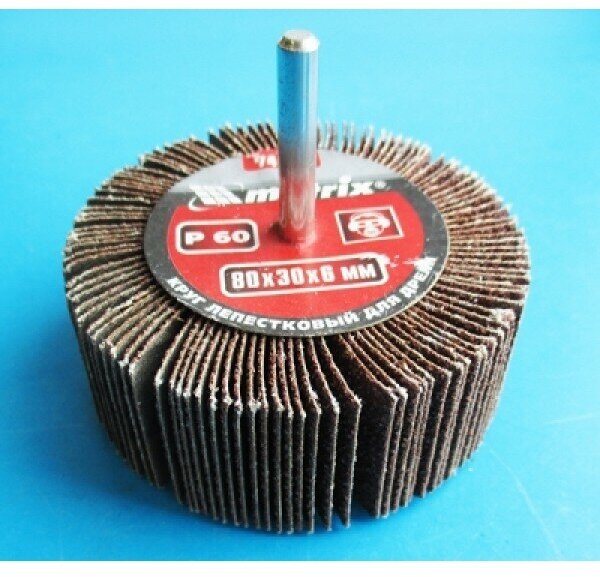 | Прочие особенности и свойства | Круг лепестковый для дрели, P 60, 80 х 30 х 6 мм// MATRIX (74142) Круг лепестковый радиальный изготовлен из лепестков шлифовальной шкурки на тканевой основе, которые радиально расходятся от удерживающего их основания, служащего также хвостовиком. Применяется совместно с дрелями в шлифовальных работах по металлу, дереву и другим материалам. Зернистость:Р60 |