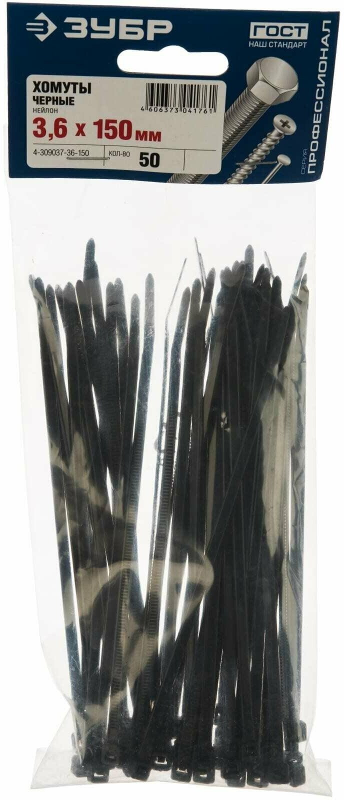 Нейлоновые хомуты ЗУБР 4-309037-36-150