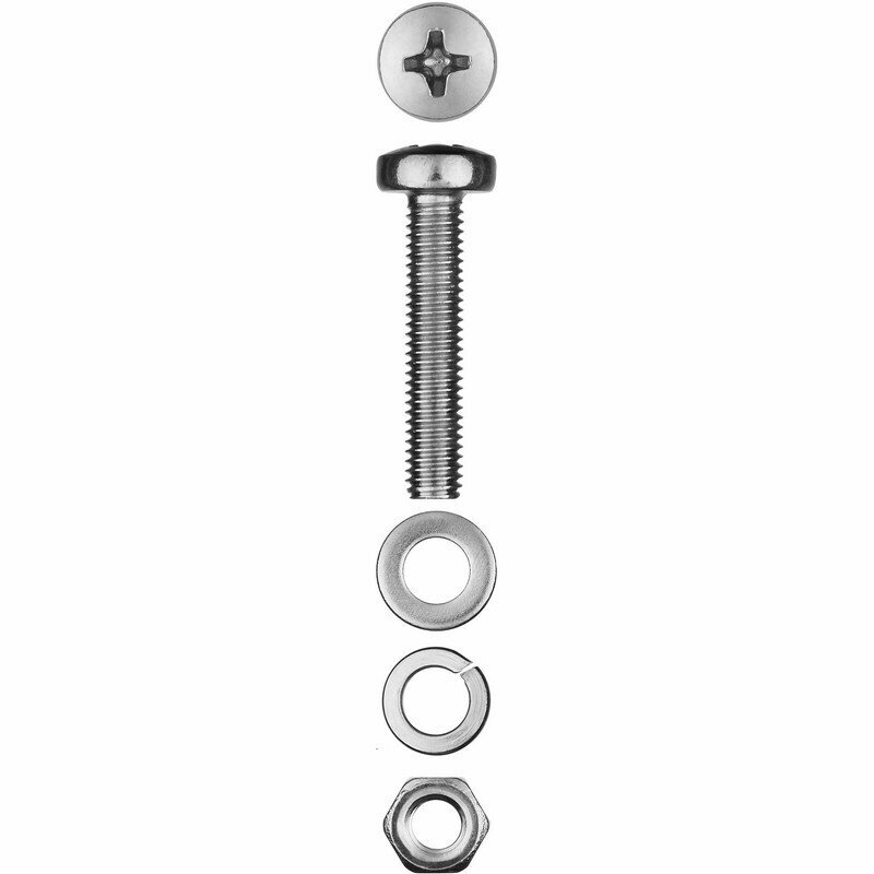 Винты имеют полусферическую головку, что позволяет использовать шайбу для усиления давления на опорную поверхность. Пружинные шайбы предотвращают раскручивание соединения. Плоские шайбы предназначены для увеличения площади соединения и распределения давления на опорную поверхность. Класс прочности 4.8 обеспечивает жесткость конструкции. Цинковое покрытие надежно защищает от коррозии.