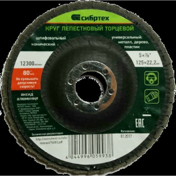 Лепестковый круг СИБРТЕХ является сменным элементом для угловых шлифовальных машин. Применяется для шлифовальных работ по металлу.